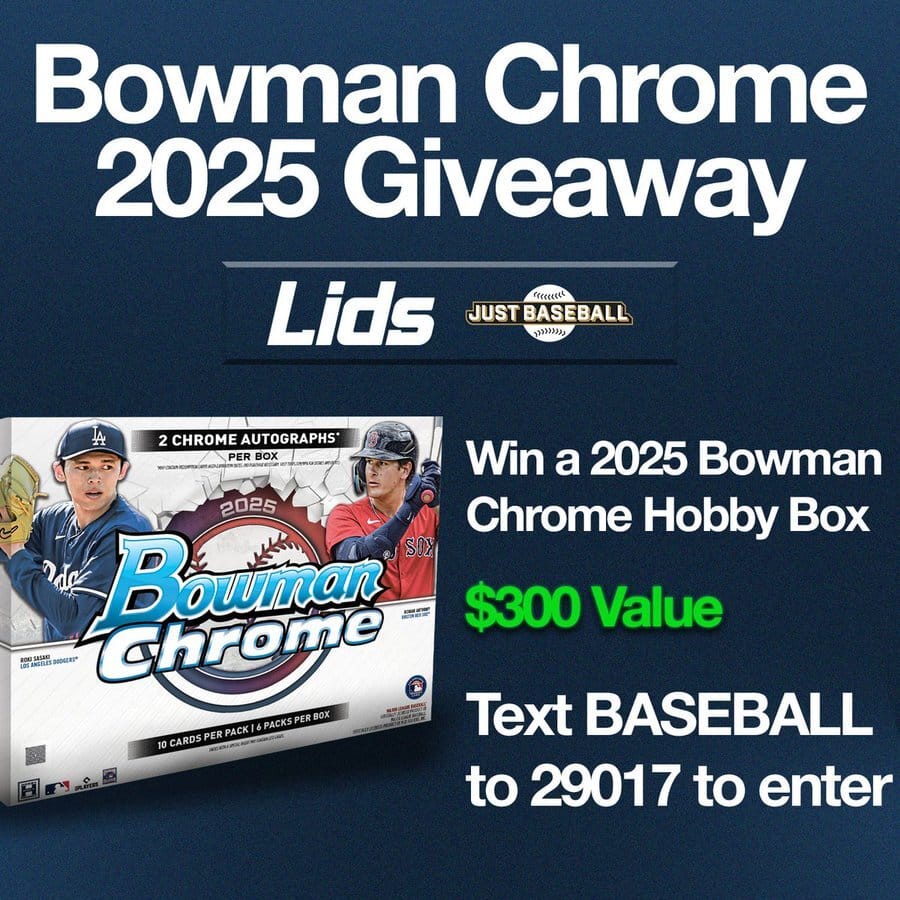 Text that number by Sunday to enter our giveaway for a chance to win a FREE Bowman Chrome 2025 Box!!!